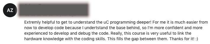 I’m also offering you the STM32L0 bare-metal programming course which teaches you how to develop bare-metal peripheral drivers and firmware for the STM32L0 microcontroller this bonus course also comes with complete source code download.